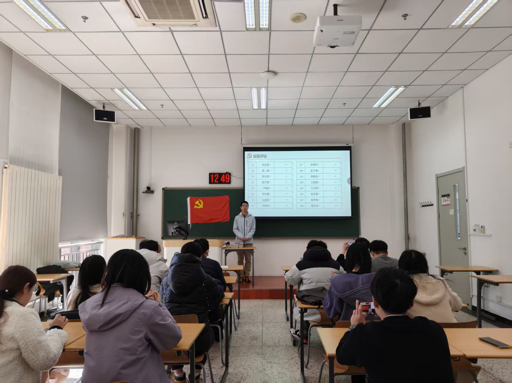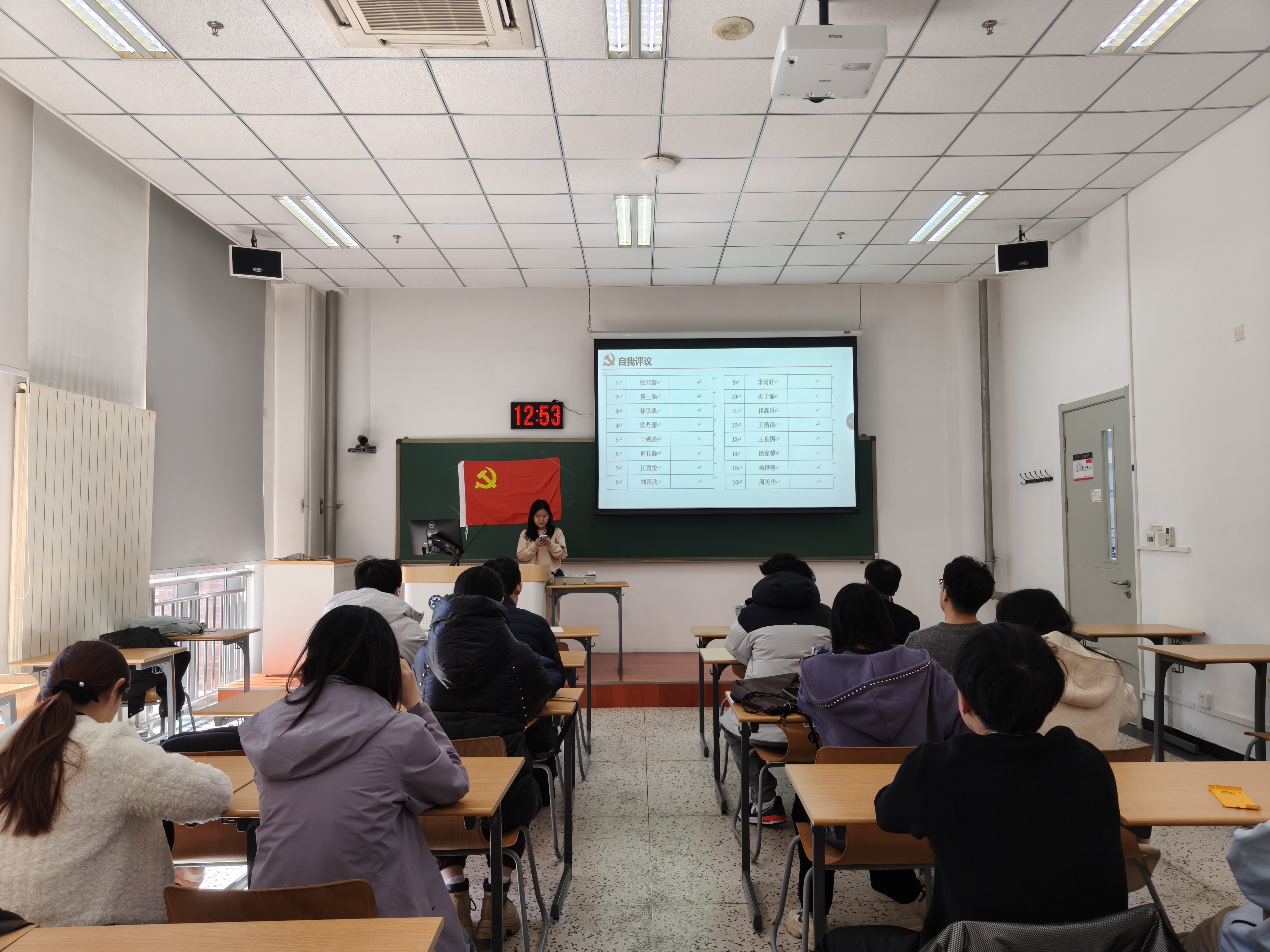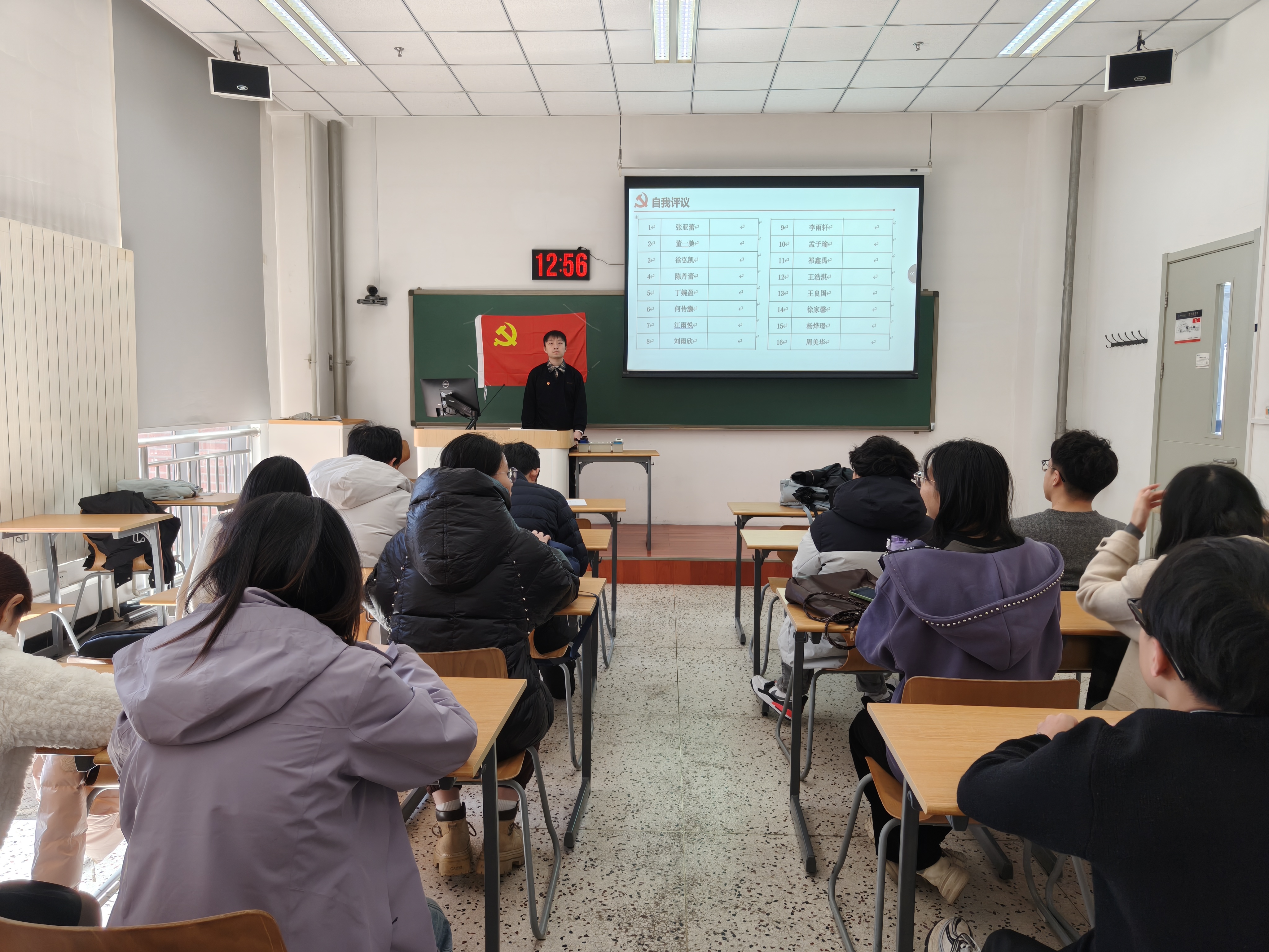 全体党员对照学生党员评议标准,围绕理想信念、党性修养、学习科研、先锋模范作用、服务集体等方面逐一开展个人自评,认真总结成绩、查摆不足、明确改进方向。随后,党员之间本着“团结—批评—团结”的原则,严肃认真开展互评,开诚布公指出问题、交流思想。大会严格按照民主测评程序,以无记名投票方式对全体党员进行等次评定。
